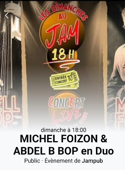 Dimanche 08/02/2026 à 18 heures , Concert avec Michel FOIZON et Abdel B BOP